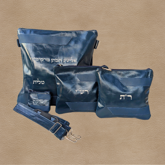 סט תיקים לטלית ותפילין מעור - דגם בריליאנט כחול